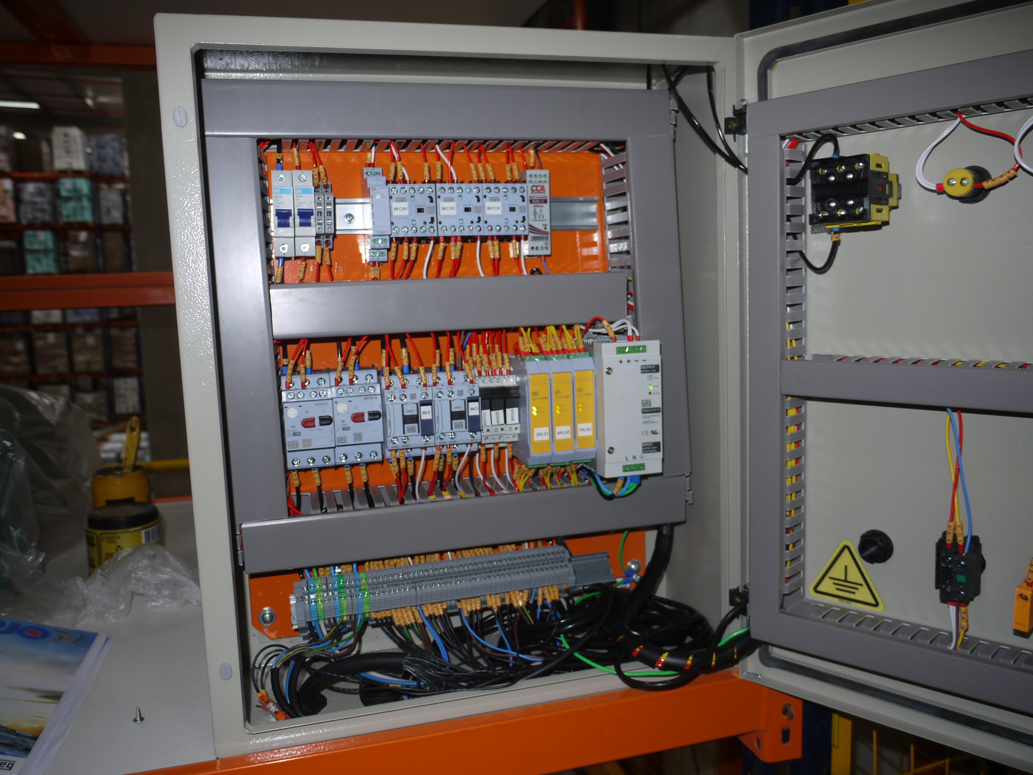 O “cérebro” dessa adequação reside em um painel elétrico de padrão superior. Organizado, sinalizado e robusto, ele reflete a organização da Goedert. Com botões de emergência de fácil acesso e uma interface intuitiva, o operador tem o controle total e seguro da máquina. Cada componente foi escolhido para suportar o regime de trabalho intenso da logística moderna, sem abrir mão da sensibilidade necessária para atuar em frações de segundo caso a segurança seja comprometida.